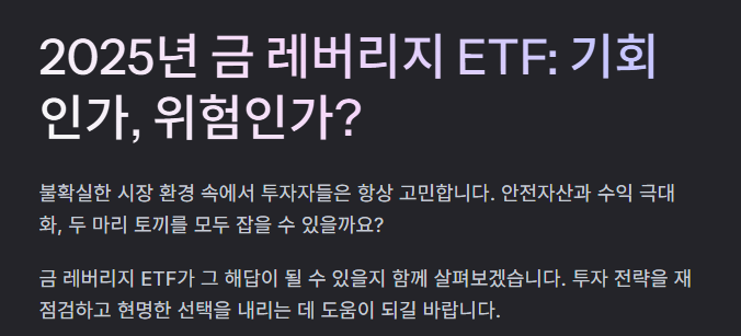 2025년, 금 레버리지 ETF가 주목받는 배경과 미래 전망