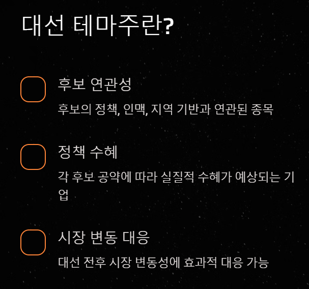 - 대선 이후 전략: 당선자 정책주로 포트폴리오 재구성