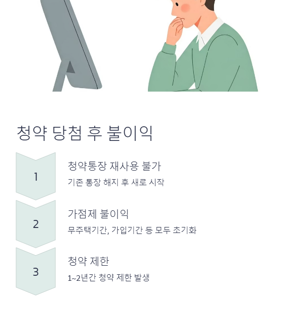 청약통장 재사용 불가: 기존 청약통장을 해지하고 새로 만들어야 하며, 가입기간·납입횟수 모두 0부터 다시 시작