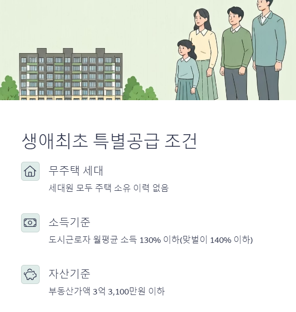 생애최초 특별공급은 아래 조건을 모두 충족해야 합니다.