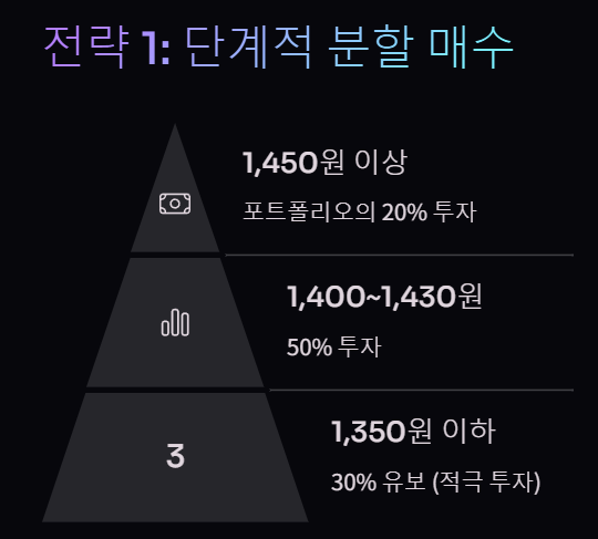 - 1,400~1,430원: 50% 투자(평균 비용 절감)
