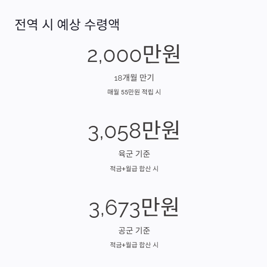 2025년 입대자가 18개월간 매월 55만 원씩 적립하면, 전역 시 2,000만 원에 가까운 목돈을 마련할 수 있습니다.