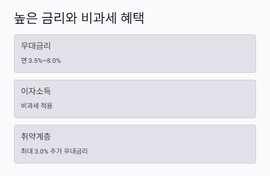 - 비과세 혜택: 만기 해지 시 이자소득세 면제