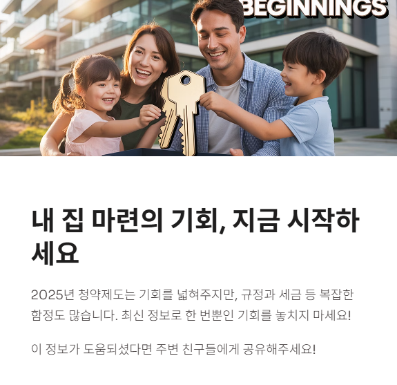 집값은 오르고, 청약 경쟁률은 치솟는 요즘, 2025년 청약제도를 제대로 이해하지 못하면 내 집 마련의 기회를 놓칠 수 있습니다.