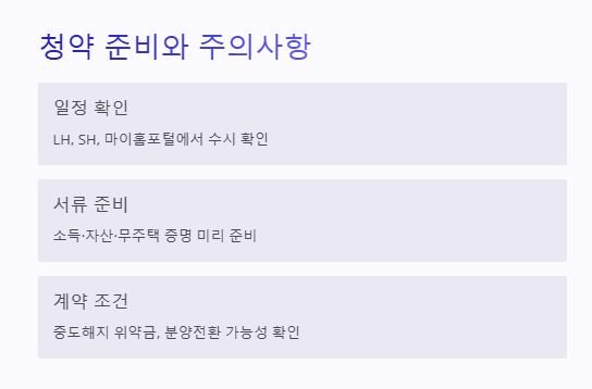 - LH, SH, 마이홈포털 등에서 청약 일정 수시 확인