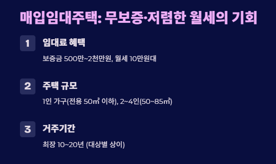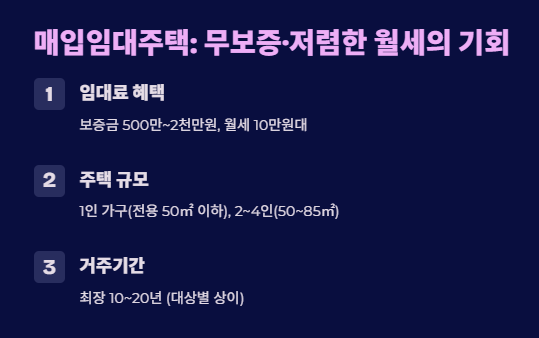매입임대주택은 LH가 기존 주택(다가구, 다세대 등)을 매입해 무주택자에게 공급하는 제도입니다. 2025년에는 전국 1,225가구 이상이 공급되며, 시세의 30~50% 수준의 임대료로 거주할 수 있습니다.