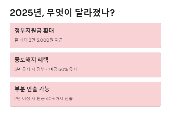 2025년에는 제도와 혜택이 대폭 강화되어, 5년 만기 시 최대 5,000만 원까지 목돈을 마련할 수 있습니다.