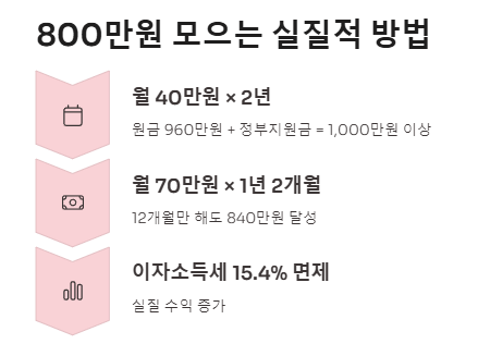특히, 2년 이상 800만 원 이상 저축하면 신용점수 가산점 등 추가 혜택도 받을 수 있습니다.