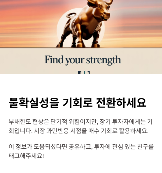 미국 부채한도 협상으로 인한 시장 변동성은 단기적 위험이자, 장기 투자자에게는 기회가 될 수 있습니다. 과거 사례에서 배울 점은 최악의 시나리오(디폴트)는 대부분 발생하지 않았다는 것입니다. 현명한 투자자라면 시장 과민반응 시점을 좋은 매수 기회로 활용할 수 있을 것입니다.