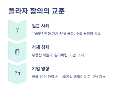 원달러 환율 변동은 단순한 숫자 게임이 아닌 글로벌 경제 판도 변화의 신호탄입니다. 1985년 일본의 실패에서 배우듯, 통화 강세를 수용할 때는 부동산 버블과 산업 공동화 리스크를 반드시 고려해야 합니다.