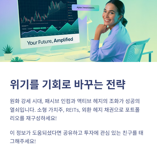 지금 바로 포트폴리오 점검을 시작하세요! 원화 강세 시대, 패시브 인컴(Passive Income)과 액티브 헤지(Active Hedge)의 조화가 성공의 열쇠입니다.