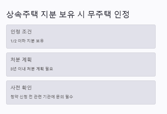 - 상속주택 지분 보유 시 무주택 인정 예외 조항을 꼼꼼히 확인하자.