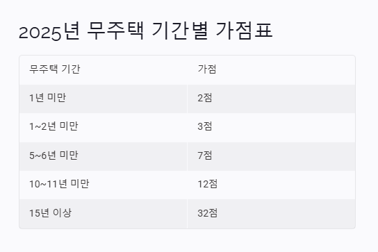 2025년 무주택 기간별 가점표
