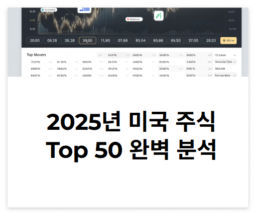 요약: 미국 주식 Top 50은 단순한 규모 순위 그 이상이며, 향후 시장 트렌드를 읽는 나침반이 됩니다. 데이터 기반의 전략적 투자로 안정성과 수익성을 모두 잡는 투자를 지향해보세요.