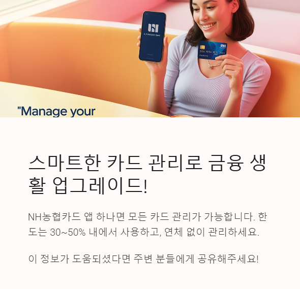 결론: NH농협 신용카드 한도, 리볼빙, 분할납부, 재발급까지 앱으로 쉽고 빠르게!