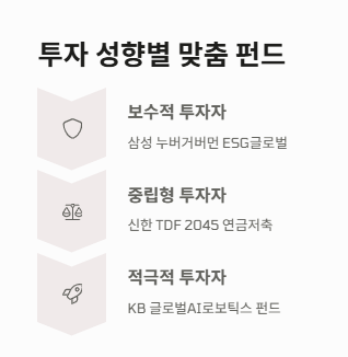 TDF(타깃데이트펀드) 확산: 은퇴 시점에 맞춰 자산이 자동으로 조정되는 상품이 초보자와 은퇴 준비자에게 각광받고 있습니다.